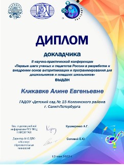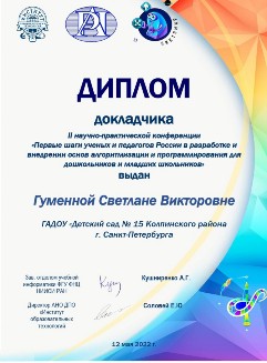Программа II научно-практической конференции «Первые шаги ученых и педагогов России в разработке и внедрении основ алгоритмизации и программирования для дошкольников и младших школьников». 12 мая 2022 года